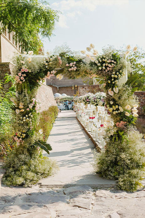 Describing the clients’ brief and how they went about with the planning process which included sifting through numerous venues, Bhavnesh Sawhney and Farid Khan from FB Celebrations share, “The client had envisioned an intimate wedding that would radiate warmth and authenticity. A gathering where every detail would be of heartfelt connections, shared moments, and a deep sense of togetherness. They perceived an ambience that would exude a comfortable elegance, with carefully chosen elements that reflected their personal journey and values. The focus was on creating cherished memories, where close family and friends come together in an intimate setting, celebrating love, joy, and the start of a beautiful new chapter.