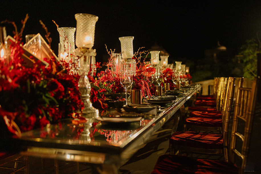 Reflecting on their experience orchestrating the wedding Bhavnesh and Farid share, “As an intimate assembly, it was truly gratifying to engage with each guest individually, meticulously tending to every element and facet, ensuring an unforgettable occasion. In short, it was heartening to see that each guest immensely enjoyed the wedding and the entire experience that we had crafted. The wedding venues were all a part of Six Senses Fort Barwara itself. The Cortile Courtyard, The Step Well, The Zanana Lawn, and The State Room, every venue had its own unique charm and story to tell about its culture and history that gave each occasion a profoundly significant meaning”