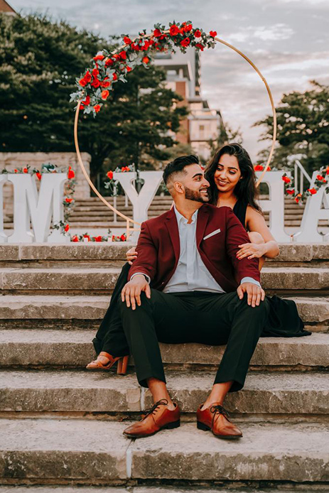 Decorated with exquisite red and white roses, and a gold floral wreath along with an LED sign that spelled out ‘Marry Me’, it’s safe to say that Sagar left no stone unturned in his quest for perfection. Tanya shares, “Since my sister loves to play with makeup and has a few friends learning photography, I happily agreed to act as a model for their photoshoot that was to be held in the park by the shoreline. However, the moment I stepped out of the car, turned a corner, and walked towards the park steps, I spotted Sagar looking dapper in a blazer. Surrounded by the salty breeze and the crashing waves, he popped the question and I uttered an instant ‘yes!’”