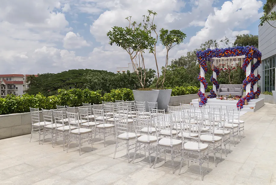 Package Inclusions: Ballroom (venue with natural lighting overlooking the magnificent Arabian Sea), two wash and change ocean view rooms, complimentary suite for the couple, customized menu with live stations, and more.