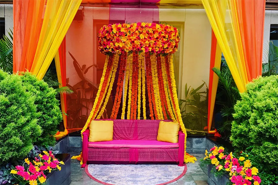 Package Inclusions: Dinner for 50 guests, appropriate wedding venue with social distancing norms, one room for one-night stay, decor & production (couple stage with backdrop and venue décor, mandap décor, photo booth, center pieces) and floral elements for ceremony- pholoon ki chaddar, 50 milni malas, couple jaimala.