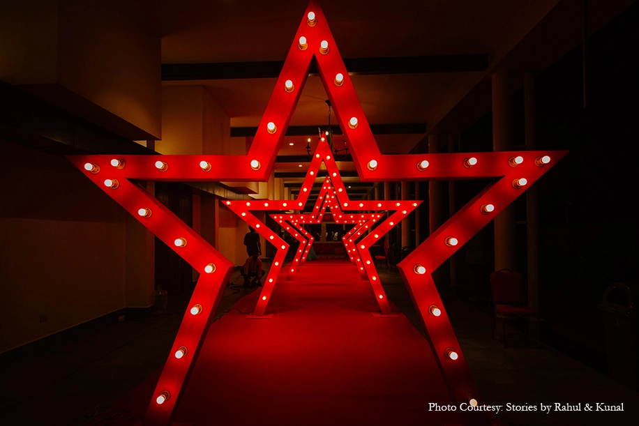 The festivities revved up with a glamorous Sangeet where glitzy decor, music, and dance took over the night. Dressed in shimmering silver couture, the couple arrived with a dramatic Bollywood-inspired entry, setting the stage for an evening of Movie magic and performances.
