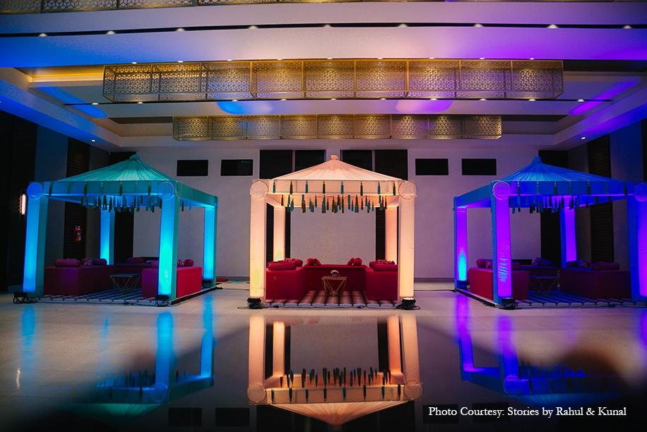 Embracing the picturesque coastal beauty of Mahabalipuram away from the bustle of the city, the couple hosted their wedding at the Ideal Beach Resort and entrusted the team of Dream Capture Events to bring their vision to life. Looking back at their experience, they share, “A wedding is the most special day of anyone’s life, and picking Dream Capture Events was the best decision we could have taken. They handled everything impeccably from start to finish and combined their professional approach with their creative ideas to make our wedding really glamorous. From decor to lighting, flowers, and more, every aspect was greatly admired by all our guests. They even handled last-minute challenges with great efficiency. We had originally wanted a beach wedding and poolside, which got derailed due to last-minute rains, but they doubled up the labor, shifted everything inside, and ensured the functions were just as beautiful. We are very obliged for their service.”