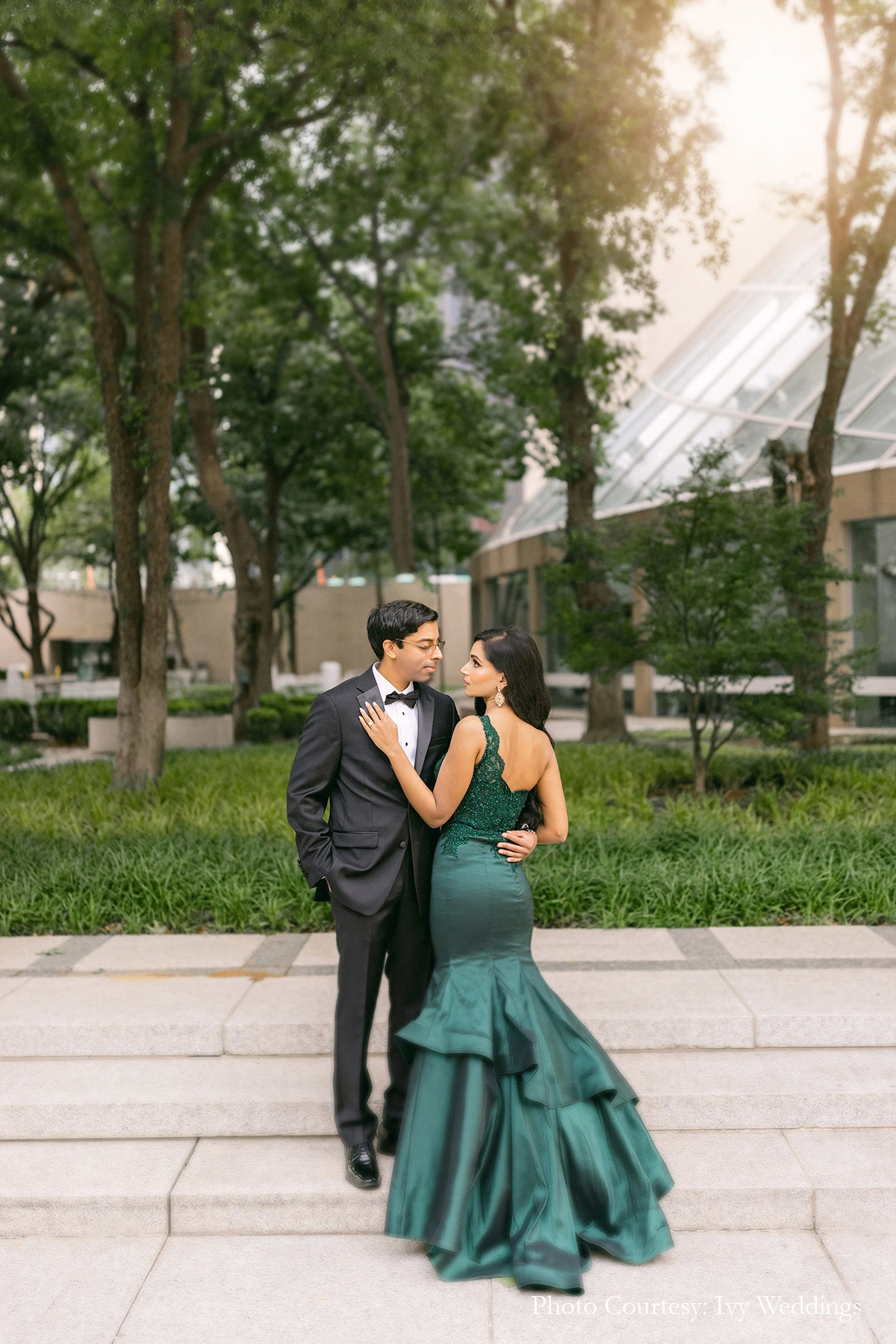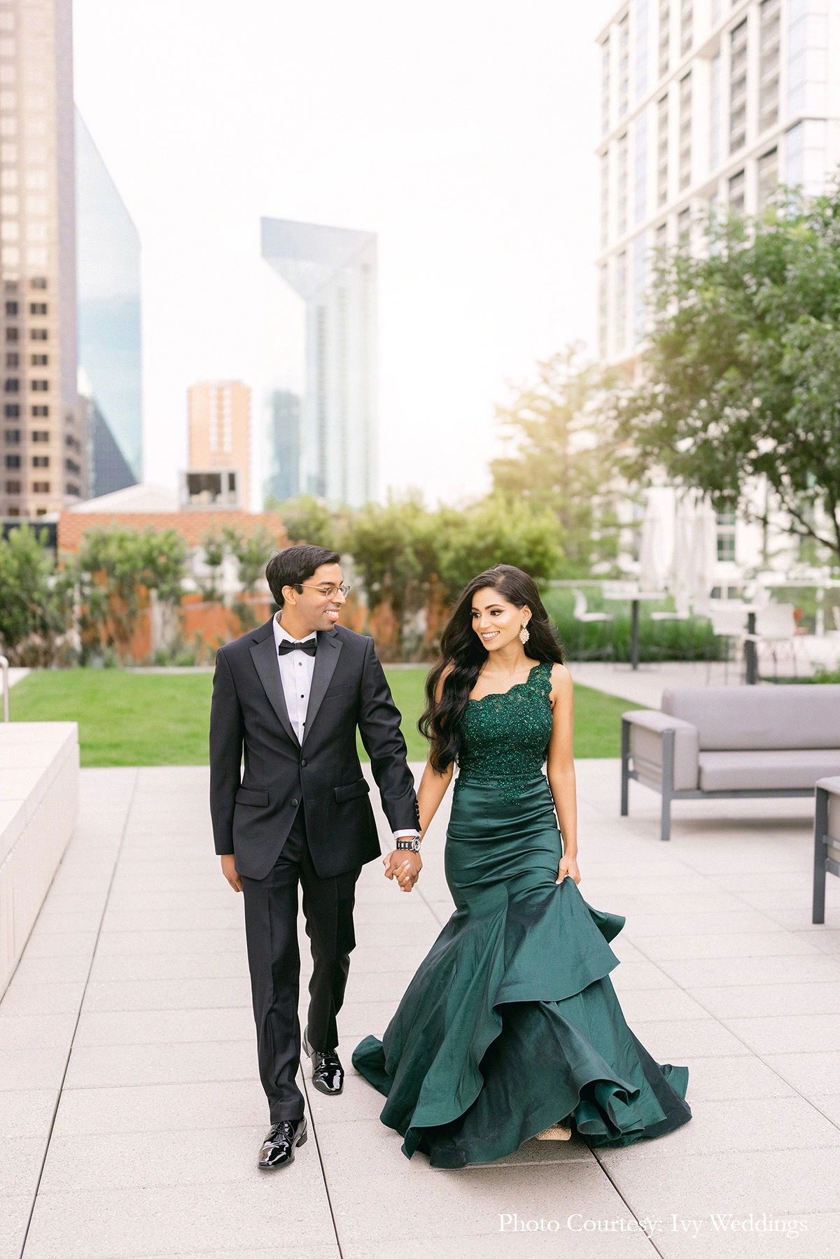 Crossing paths online, Ramya, an Accountant by profession, and Niranjan, a Physician fell for each other the moment they met. Living in different states at the time, their bond deepened as they met again and again exploring their favorite haunts in Ramya’s hometown in Texas, which made it the perfect location to immortalize their love in the form of a memorable engagement shoot.