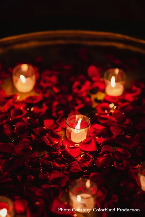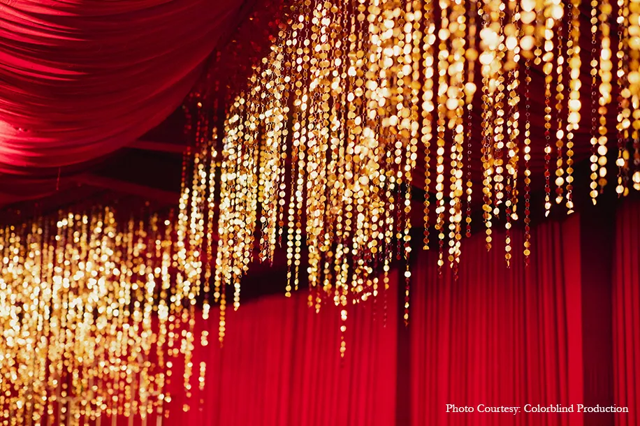The couple had a very well thought out, elaborate vision for their wedding, and they chose the team of Tinselle Events to bring it to fruition. Praniti Banga, Co-Founder of the company shares, “The couple’s love for a traditional celebration reflected deeply in both the selection of the venue and the ideas they had for the decor. The brief they gave was crystal clear from day one. They wanted big bright colors for their mehndi, a royal red wedding and a very contemporary sangeet ceremony which we put together by working tirelessly to ensure that they were extremely happy with the same.”
