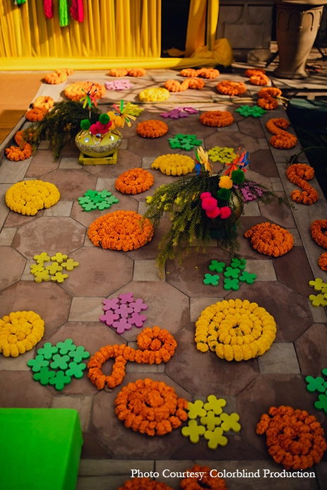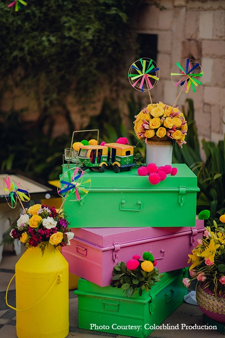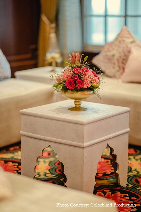 Vasundra Banga Kapur, her partner and Co-Founder adds, “Another important factor for the couple was to stay true to the aesthetics of the property and retain the royal and traditional Mewati look and feel of the property. They wanted to highlight the architecture and natural beauty of the property for which we used a lot of details, elements and colors. We went through an extensive planning and design process to put together this really eclectic and fun wedding.”
