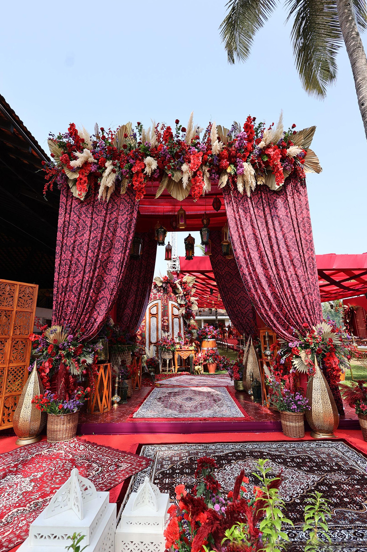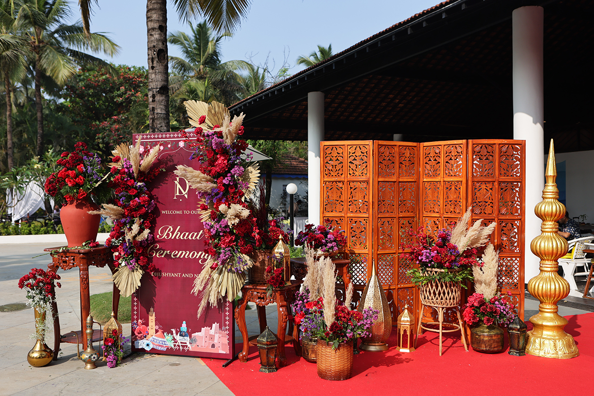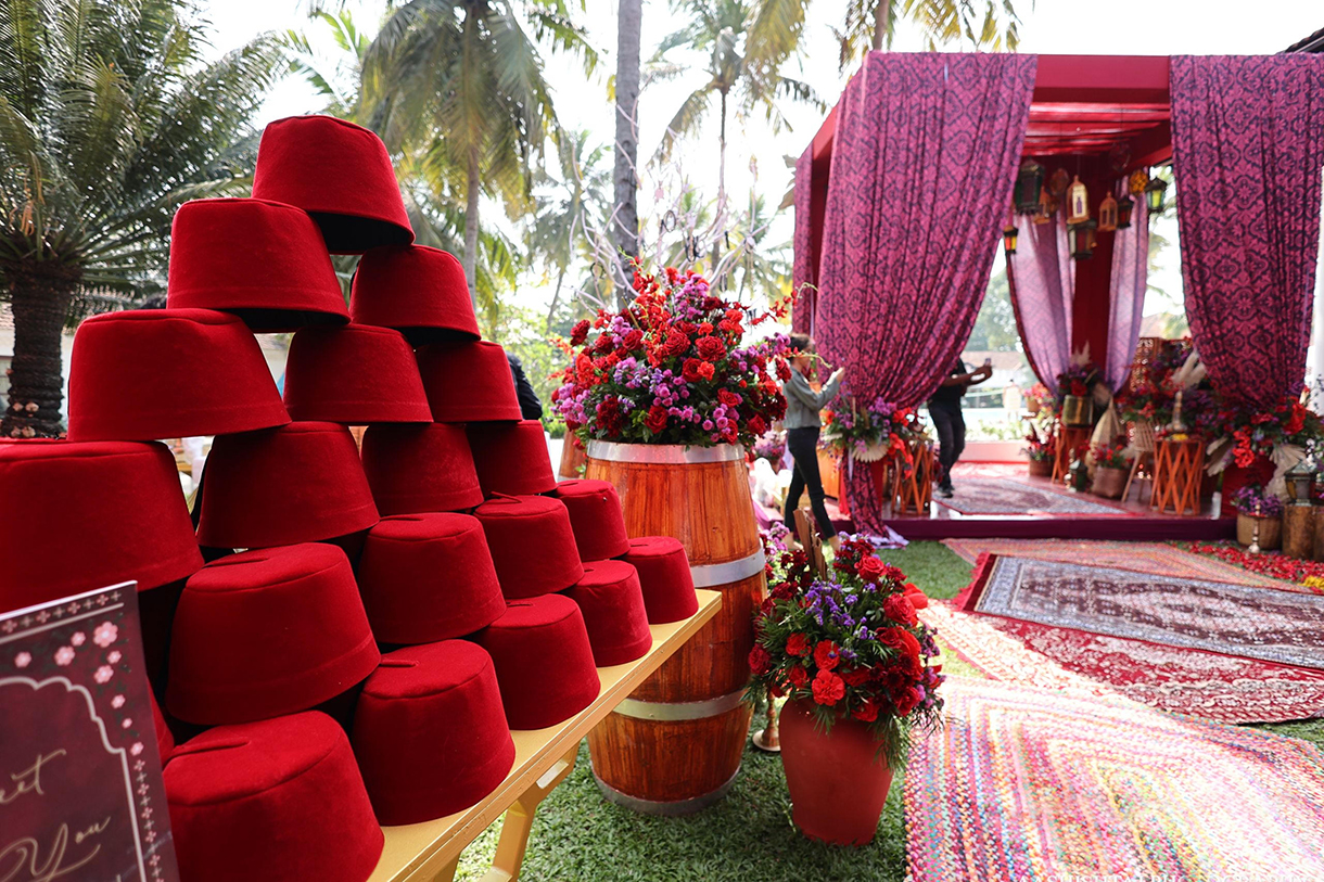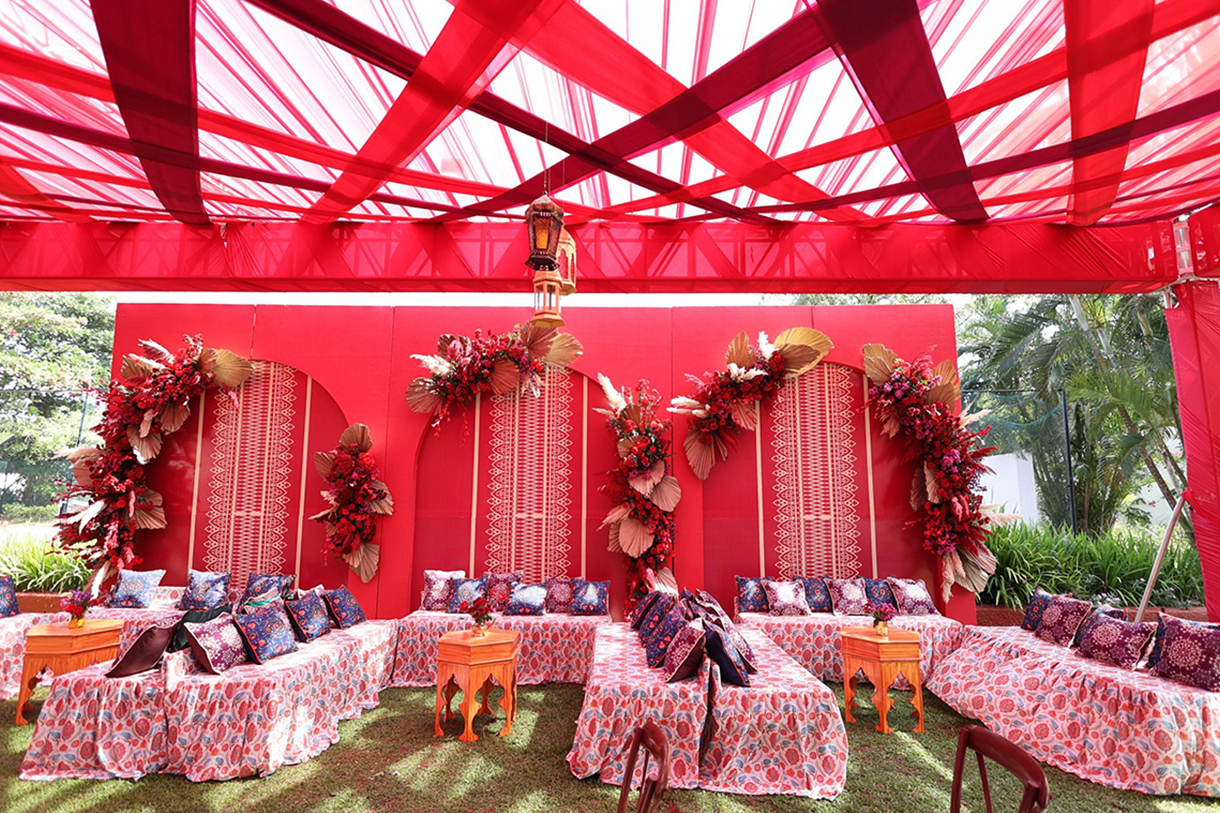 At the Bhaat ceremony in Indian weddings, the groom’s family is treated to a sumptuous feast by the bride’s side. For Netra and Dushyant’s union, this event followed a Moroccan theme.