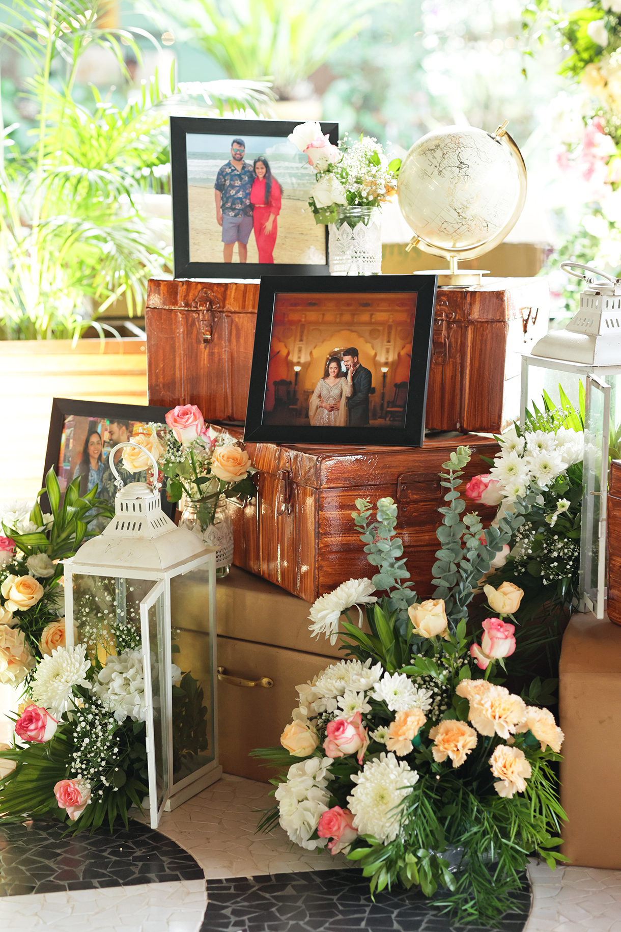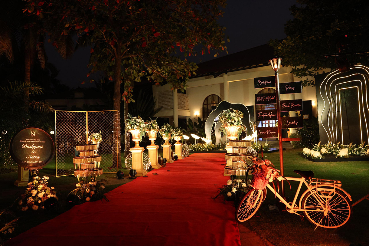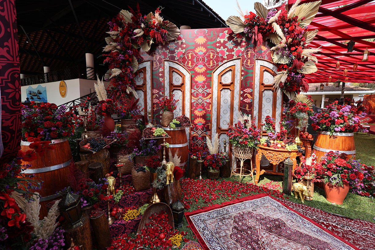 Seby Noronha from Exotic Goa Events shares the couple’s vision for their union and the personalized elements that made it special, “The couple desired an ‘Around the World’ theme for their wedding celebrations, with each event uniquely representing a different part of the globe. They envisioned vibrant, culturally immersive experiences that would transport their guests to various international destinations. The decor, food, music, and overall ambience were to be tailored to reflect the chosen locales, creating a memorable and exotic journey for all attendees. To make it more personalized, the couple incorporated their travel memorabilia into the decor, such as photos from their trips and souvenirs, adding a sentimental touch to the thematic elements. Wedding favours were in sync with the theme of the event.”