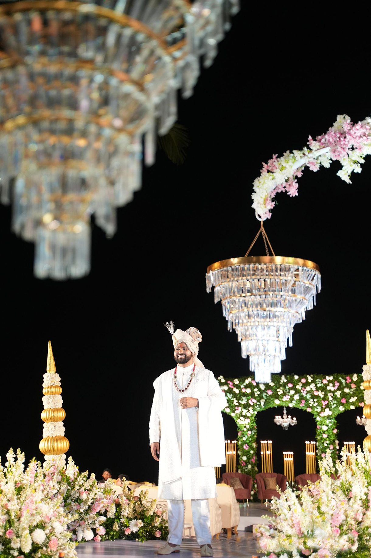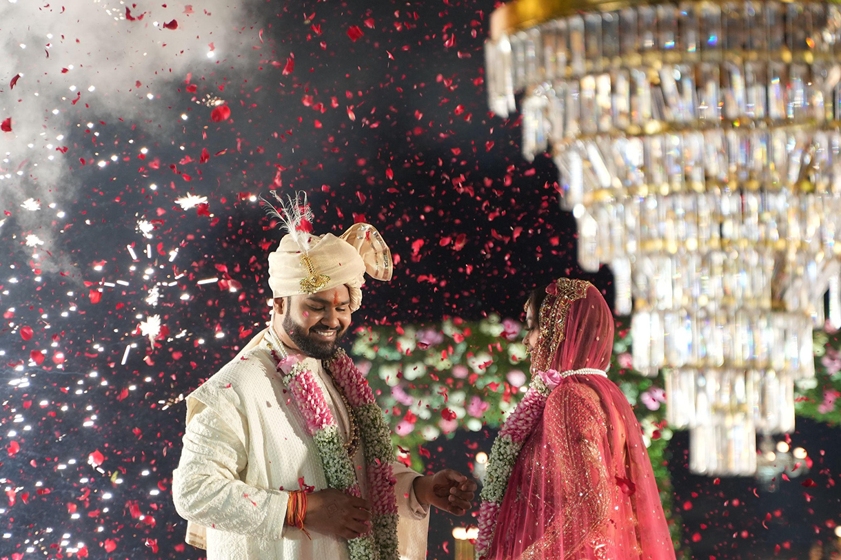 After the globally inspired events, the couple embraced their roots with a traditional phera ceremony. Seby shares, “The mandap was adorned with jasmine flowers, and the decor featured rich fabrics and intricate patterns. The couple dressed in traditional attire, and the rituals were conducted with great reverence. The ceremony was a beautiful blend of culture and tradition, providing a fitting culmination to the multicultural celebrations.”