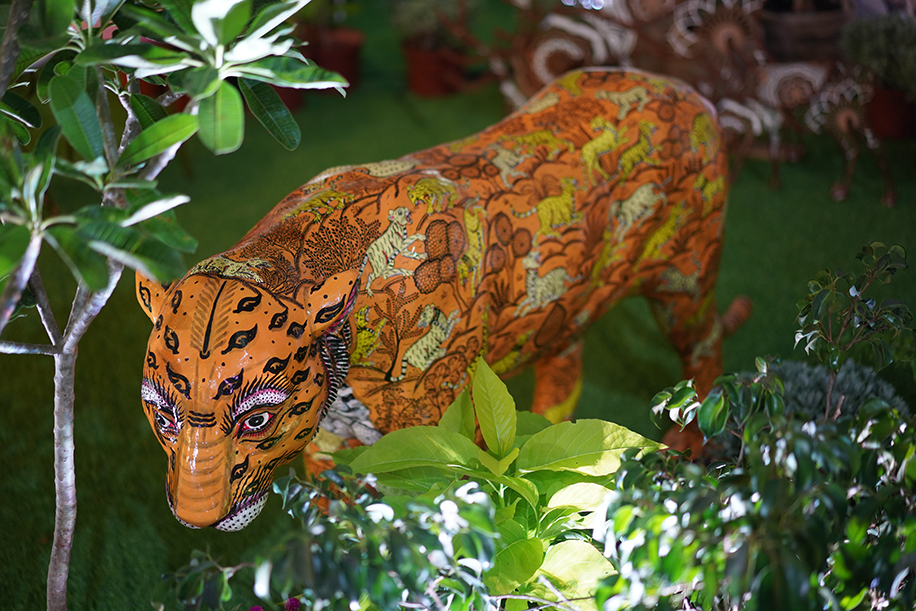 Weddings are the couple’s canvas to express themselves unhesitantly. In Brihati’s case, she used this opportunity to showcase her love for tigers. Aparna & Saranya share, “Our forte is our ability to customise a decor story keeping our clients’ preferences in mind. So, when Brihati let her love for tigers be known to us, we knew that we wanted to incorporate it into the wedding somehow! After fixing the theme we brainstormed on how to include tigers in the mix and came up with a pretty artistic solution. We got in touch with renowned artist Apindra Swain who hails from Puri, Odisha painted our papier-mâché tigers using the ‘pattachitra’ art form. As a result, these artistic creations fit right into the decor story and lent the venue a true forest-like ambience.”