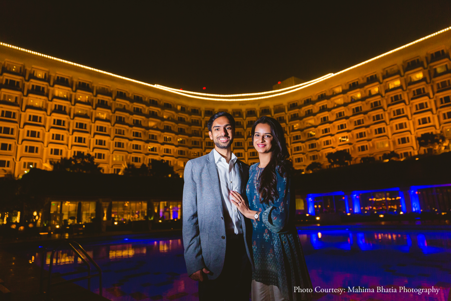 Tanvi adds, “As I was heading out to meet Arjun’s parents for dinner at Taj Palace Hotel, I could sense the excitement building up within my family. When I reached the restaurant, the manager led me to a terrace where a beautiful setup awaited me. In that minute I knew I wasn’t having dinner with Arjun’s parents! I was feeling a little jittery as I suspected Arjun would surface from some secret spot for this surprise dinner. Soon enough, he entered and photographers and videographers also popped up. He then went down on one knee and asked me the most important question of my life. I remember laughing nervously and kept staring at him to cherish the moment even though there were cameras to capture everything. I just wanted to take a few minutes to just capture that moment in my head for life. The funny part in this was that I kept giggling and the ‘Yes’ didn’t come out of me for a while until he finally asked ‘Yes or no?’ After I said ‘Yes!’ we relished the personalized dinner menu with the most delicious French dishes set on a table by the pool with the view of the beautiful Taj Hotel. It was just perfect with champagne, light music and quality time together before the Diwali madness commenced.”