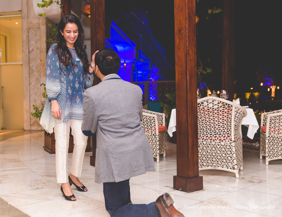 His well-planned proposal left her speechless and him a little worried for a few seconds! Check out food-loving couple Arjun and Tanvi’s lovely love story and how he pulled off a dramatic proposal at the Taj Palace Hotel, New Delhi.
