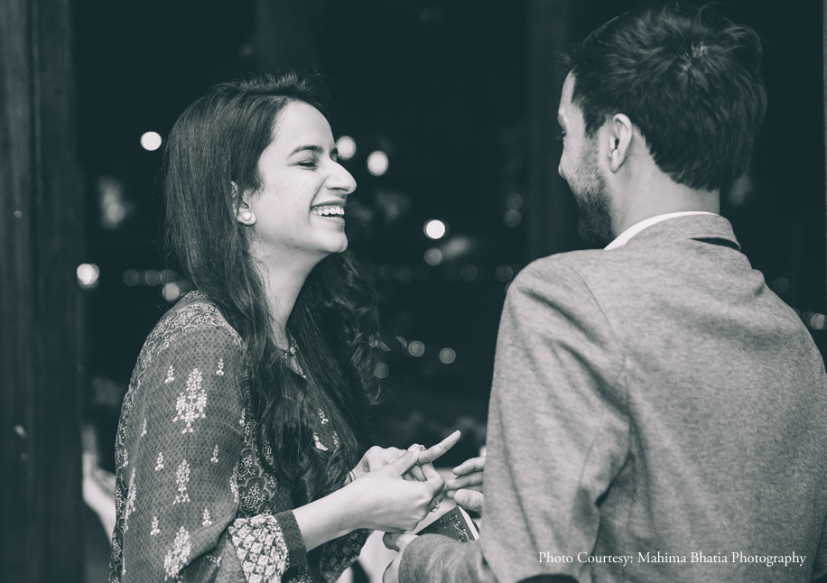 Tanvi shares, “Arjun and I got to know each other through common connections in London, UK. In July I flew to Gurgaon for my summer break and to work on my master’s dissertation. At the last moment, I had to delay my flight back to the UK due to a family engagement. As destiny would have it, Arjun was also in Gurgaon for work at the same time and we started to talk. Once we returned to London, we decided to meet up. I almost backed out of the date at least three times while talking to my best friend on WhatsApp as I walked to the bar. The evening passed with the both of us teasing each other about how he was a ‘BBCD’ and how I was possibly ‘Fresh off the Boat’. After four hours at the bar, we were craving food so Arjun suggested a sit-down meal and we headed to my favorite Chinese takeaway place called Walk to Wok. The next day we exchanged messages about how fun the night was and we should see each other soon to continue our reckless banter. Months passed and so did our visits to each other’s countries where we met each other’s friends and families. We both knew in our heads and hearts that we wanted to be on a journey together for a lifetime.”