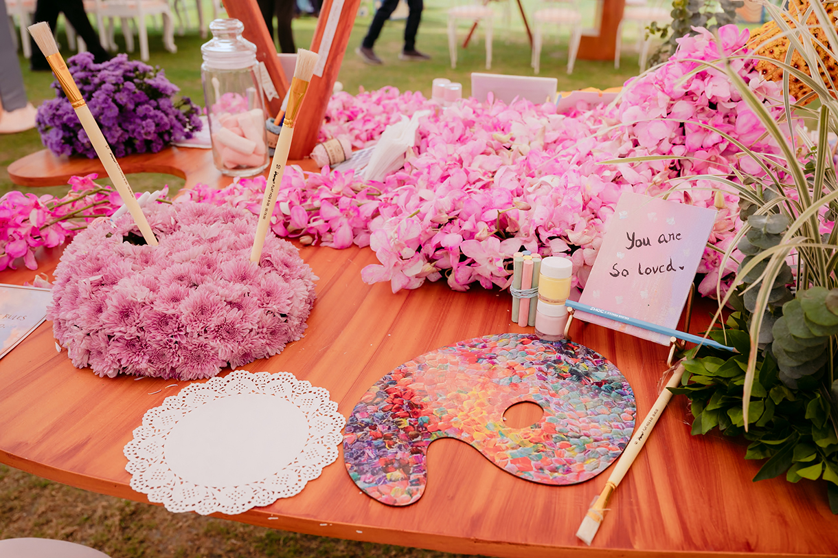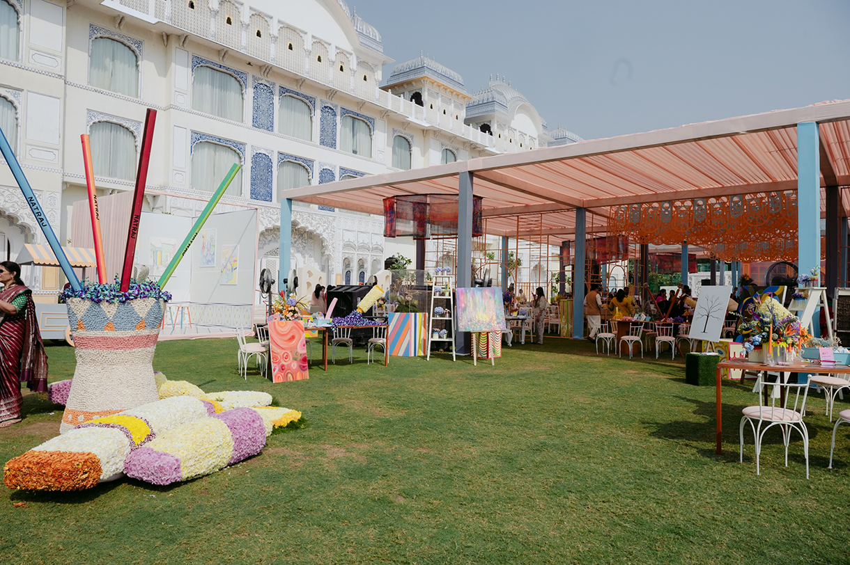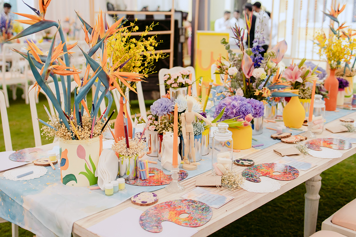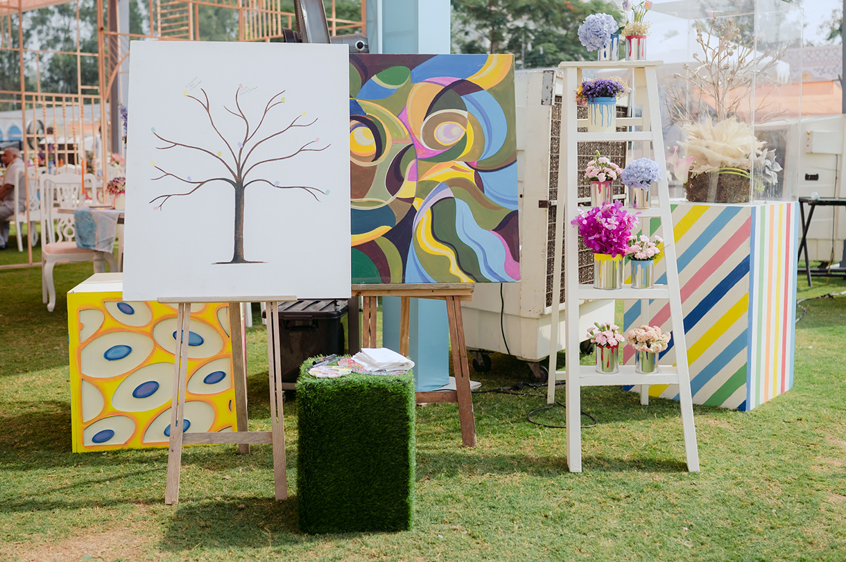 Aakash Doshi from Zesst Events and Weddings shares, “Both the families and the couple share an avid love for art and the vibrant culture of Italy. As we brainstormed, we decided to come up with a unique theme that merges both these elements to create a haldi celebration that is truly out-of-the-box. ‘The Paintbrush Theme’ was inspired by the streets of Florence Italy. The event also included various art-centric and Italy-inspired entertainment corners such as canvas and crayon stations, perfume tie-dye counters, and block printing with organic colors. Everything was tied in neatly with a pleasurable gastronomic journey for the guests with renowned chefs crafting authentic dishes from cities around the world. Fun games, family dance performances and a witty anchor made the experience even more flavorful for the guests.”