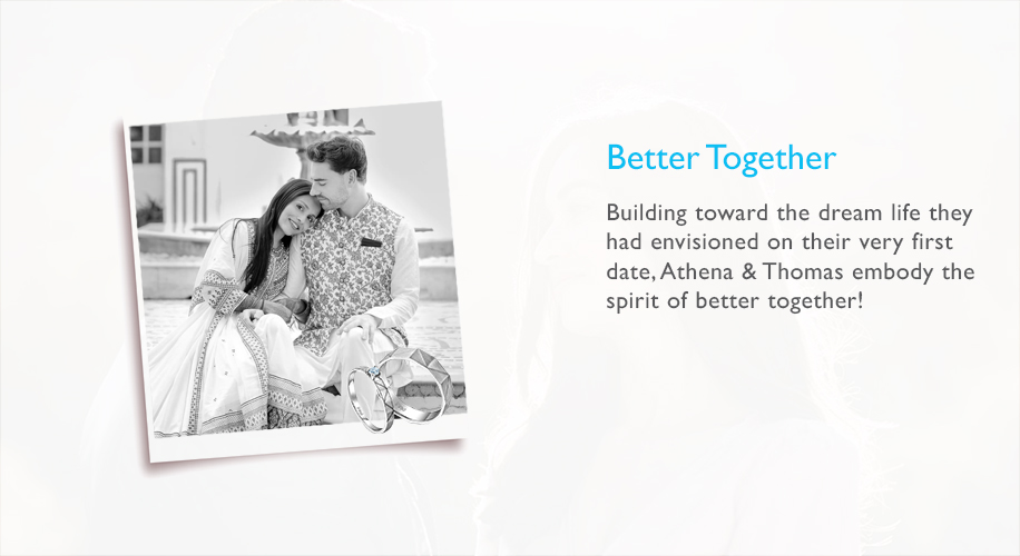 Life is all about balance, and Thomas’s calm, creative soul found his match in Athena’s jet-setting, ambitious spirit. “ ‘Love at first sight’ may sound corny but I knew the very first time we met that she was the one for me. Sure she is beautiful, intelligent, charismatic, and a catch by any standard, but it’s her little idiosyncrasies and quirks that I cherish. In the past 3 years, I have married the woman of my dreams, built my dream house, and started my own company, and each landmark moment of my life was inspired by the love and support of Athena”.
