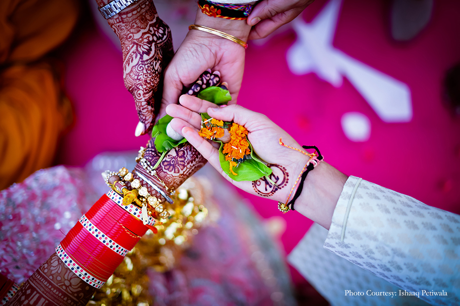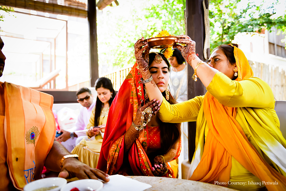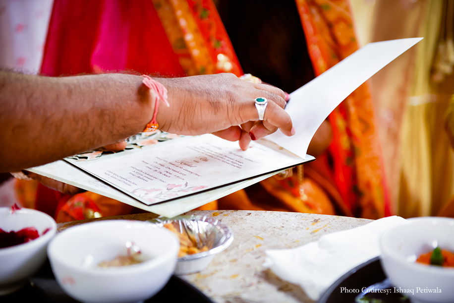The Kankotri or Wedding Invitation card was offered to the Gods to welcome them to bless the couple.