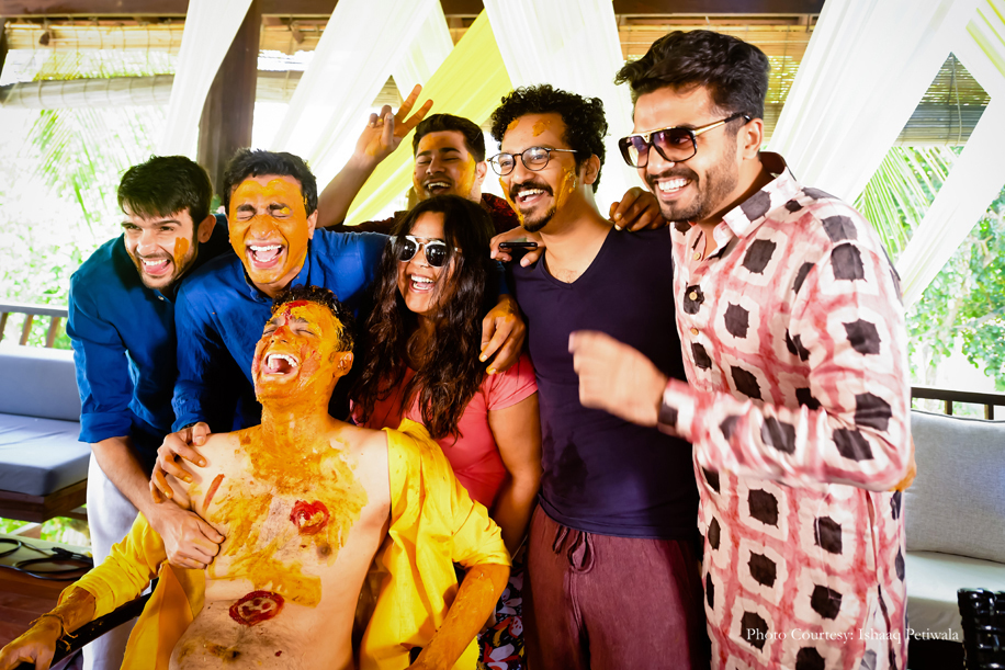 The rituals were followed with a fun haldi ceremony in which the groom’s friends smeared turmeric paste on him.