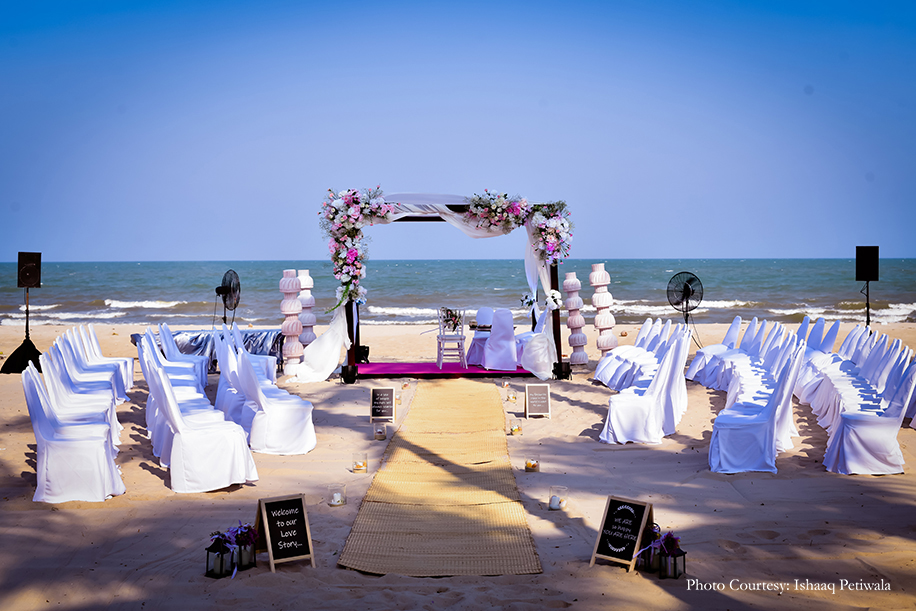 A beautiful lavender mandap for the pheras was erected on the golden beach, in front of the beautiful waves.