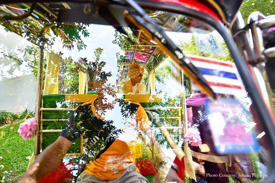 The groom made an entry on a quirky tuk-tuk and his baraat accompanied him with dancing and cheer.
