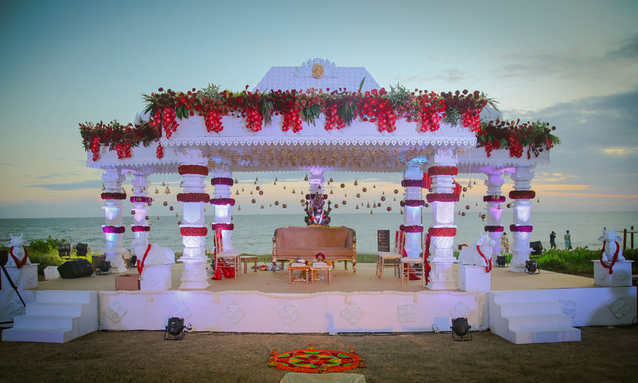 Disha and Lov’s grand wedding was a medley of glamour, creativity, and diverse customs with their pheras conducted in a majestic mandap of white and red. “We wanted a very different wedding venue, especially one that exuded luxury and natural charm. We felt that Shangri-La Hambantota Resort & Spa in Sri Lanka fit our requirements completely as it is strategically located and has great facilities and fantastic staff. We’ve always wanted a beach wedding, and thought this was the perfect venue,” said Lov.