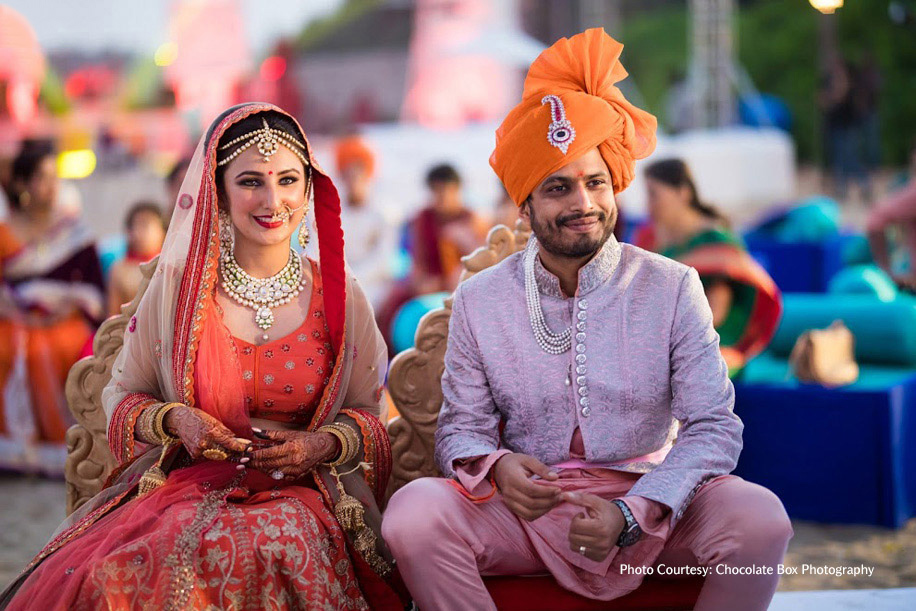 Neha and Pawan, Shangri-La Barr Al Jissah, Oman were looking to host an intimate wedding against the water’s edge and the Shangri-La Barr Al Jissah in Muscat, Oman was the perfect pick. The peach mandap and rocky shore was straight out of a postcard on their big day. “We wanted a very small, intimate wedding. Having grown up in Dubai, having a wedding there would mean the wedding would’ve turned into a very large affair. The Shangri-La resort in Oman was our choice because it is one of the most beautiful properties we’ve ever seen. And we wanted to prioritize on our guests’ comfort levels,” said Neha.