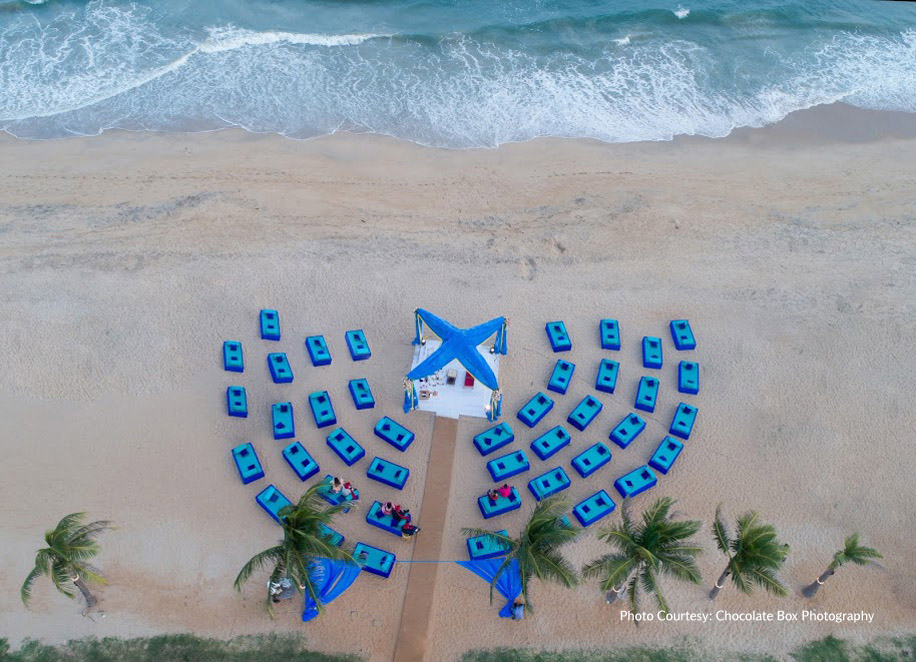 Bright blue and yellow décor resonated with the gorgeous beach that hosted Sama and Abhin’s dream wedding setup. The couple had always wanted to say ‘I Do’ on a soft, sandy shore, the bride said, “We’d always wanted a beach wedding that was easily accessible. A friend suggested the InterContinental Chennai Mahabalipuram Resort on the East Coast Road in Chennai. As soon as we entered the hotel, met the staff, saw the rooms and then the beach, we knew it was the perfect venue! The hotel has the right balance of modern and traditional design and with the help of our wedding planners we were able to achieve the wedding of our dreams.”