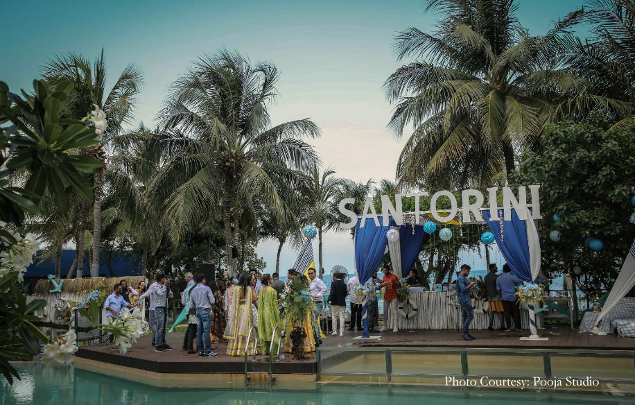 Simi and Ketur’s outdoor functions were resplendent with gorgeous views and classy décor. The mandap overlooked the ocean and the muted drapes against the sunny skies were straight out of a travel magazine. The bride said, “Our families are spread all over the world, so Thailand was the most suitable location. We wanted an intimate wedding with only close relatives and were looking for a place with a holiday vibe with fresh ocean breeze, and powdery beaches. Dusit Thani Pattaya with its stunning natural backdrops and immense experience managing Indian weddings made for a fitting choice for us.”