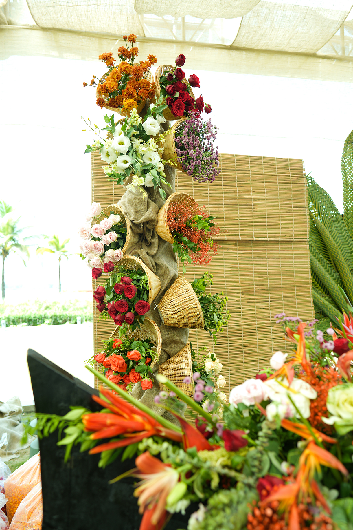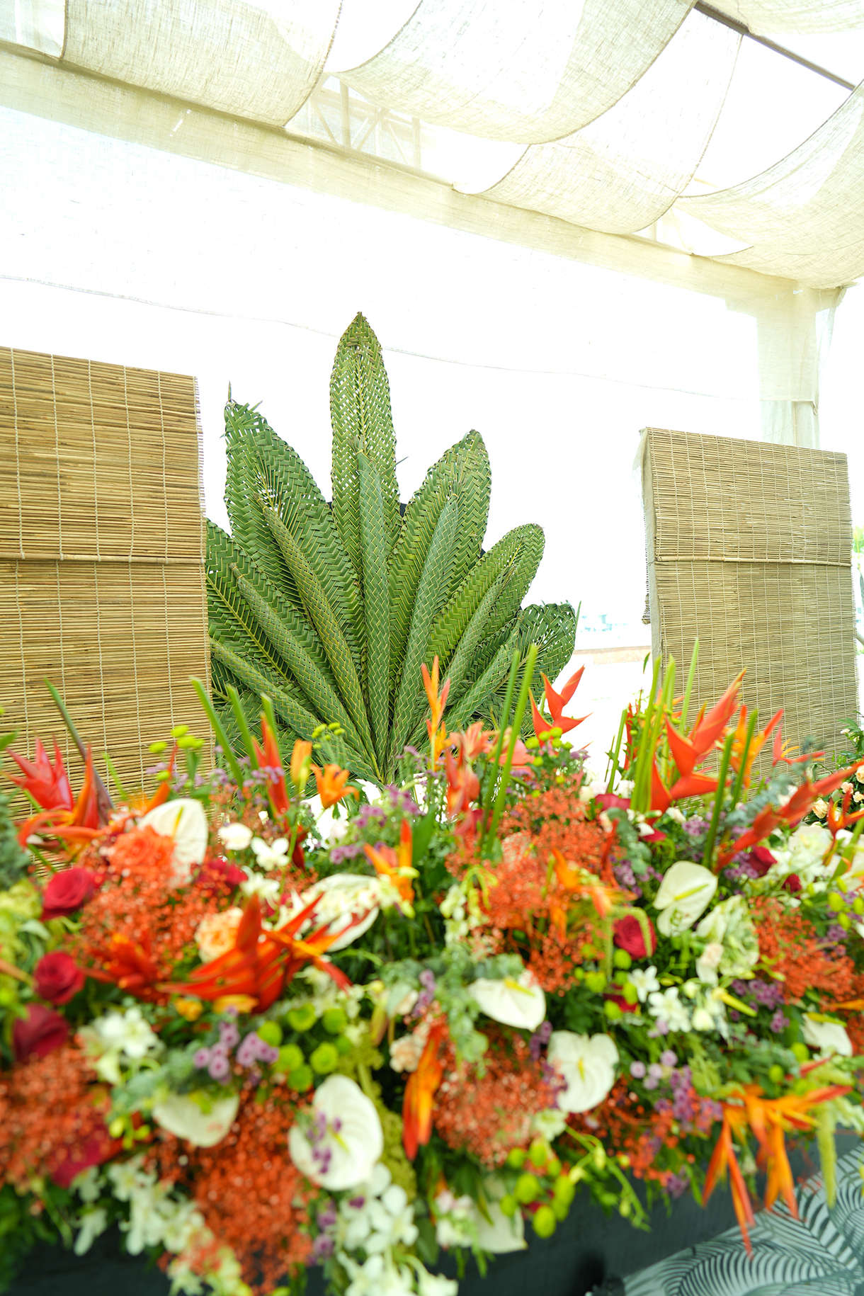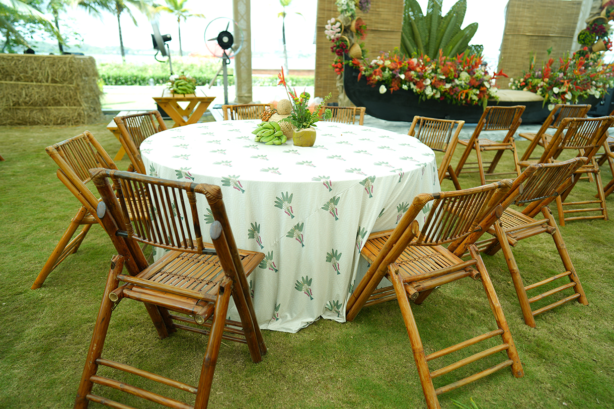 Natural and refreshing, the haldi ceremony flaunted a bamboo theme that was perfectly in sync with the venue. Bamboo chairs made the guests comfortable while centerpieces crafted with bananas and coconuts accentuated the tropical charm.
