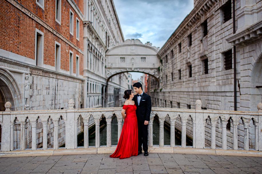 6. Romance in Venice – On the last day, just before the couple was leaving for the airport, we scurried around and took three shots in a gondola. We skipped a couple of lines, took all the shortcuts we could and shot till half an hour before they had to be at the airport.