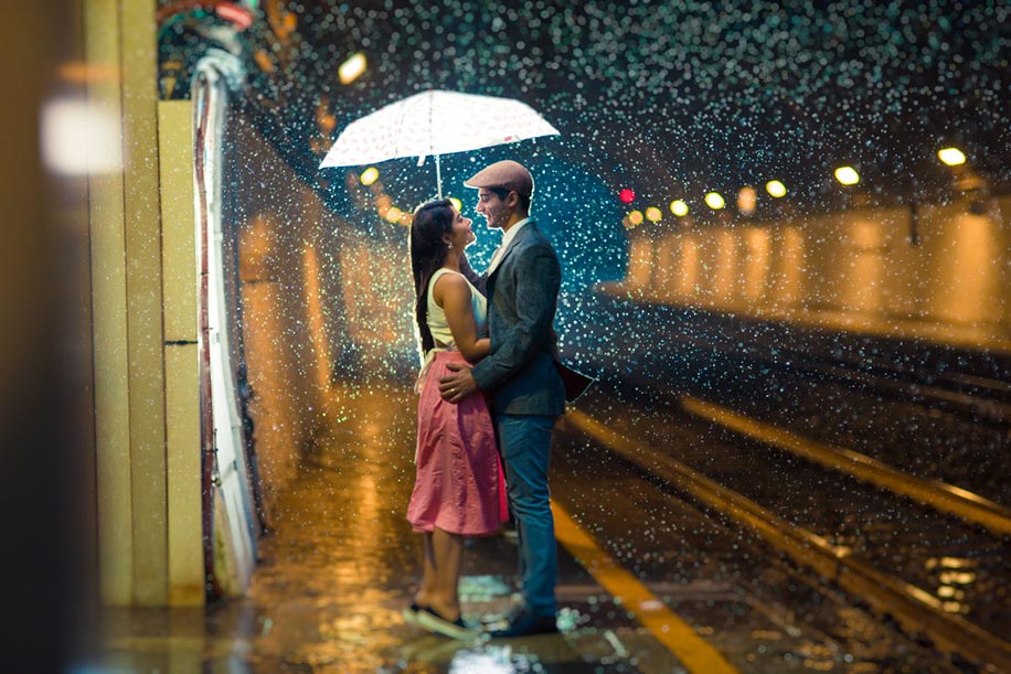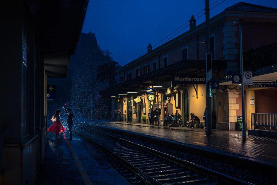 4. Singing in the Rain – This is at Monterosso al Mare, two stations away from Manarola. We’d initially planned a sunset shoot, but there were thunderstorms as we got off the train. Dhaval and Shivani had an umbrella at hand, there was a tunnel behind them and we just took these shots at the station itself. They’re magical!