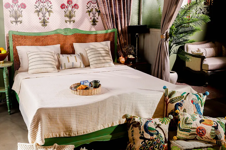 Offering a buttery soft experience, this range features premium quality quilts, pillow covers and accent cushions that are highly breathable. Its innovative material not only allows you to lounge in luxury but also allows air circulation which, in turn, keeps the body oxygenated and free of annoying moisture. And, the addition of floral embroidery, intricate zardozi stitching and embellished geometric quilting ensures the style bar stays high!