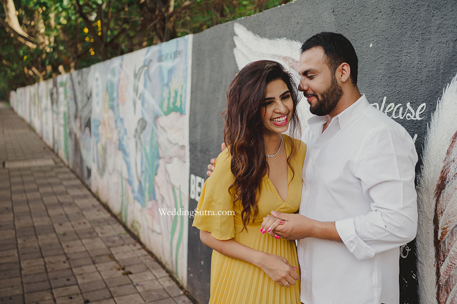They end up in front of one of Mumbai’s most famous street-art displays. “I love how these paintings are as vibrant and beautiful as our love!” Bhagyashree says.