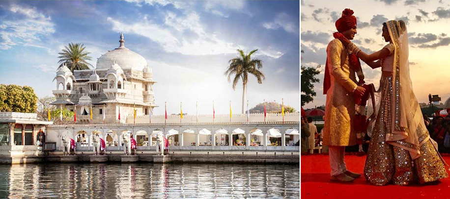 A 17th-century palace, Jag Mandir (Lake Garden Palace) attracts many elite guests who are ferried to its historic structure in the middle of Lake Pichola by boats. An in-house heritage museum, stunning water views, tranquil gardens and regal courtyards ensure a royal wedding or magnificent sangeet experience for the moneyed set.