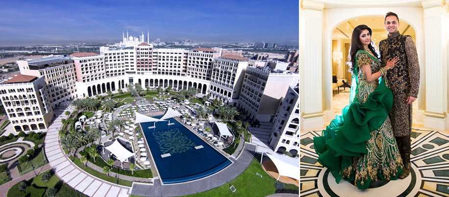 Located in the heart of Abu Dhabi, Emirates Palace boasts of 85 hectares of beautiful gardens and stunning views of the Arabian Gulf. The Ritz-Carlton Grand Canal in Abu Dhabi is another regal structure in the UAE capital. Its design was inspired by the Italian Renaissance aesthetic. It offers a private beach for seaside weddings, alongside sprawling ballrooms and gardens with the backdrop of the grand Sheikh Zayed Mosque.