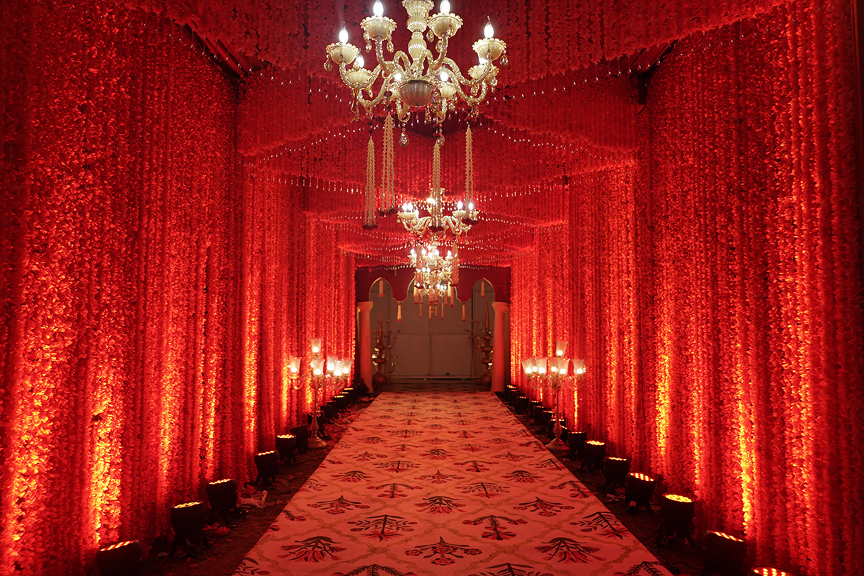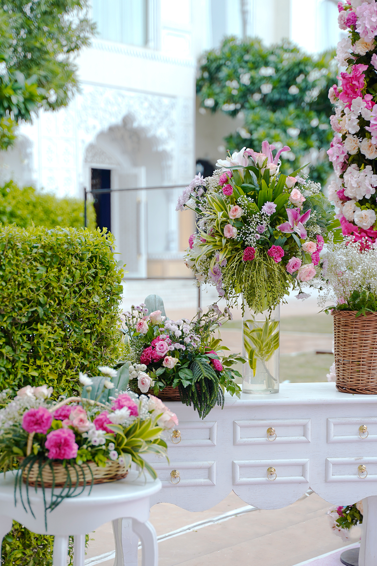 Keeping the couple’s likes and dislikes in mind while adding their own creative twist to the decor, the planning team executed a series of incredible wedding celebrations. Team Bhagwati Weddings shares, “This wedding was a truly royal and unforgettable affair, characterized by opulence, attention to detail, and a perfect blend of tradition and modernity. After many iterations and meticulous planning, our team successfully executed the couple’s vision. Every detail, from the table settings to the lighting, contributed to the overall grandeur and elegance. The celebrations at Leela Palace Jaipur seamlessly blended the sacred and the whimsical, creating a royal and unforgettable celebration that reflected their unique personalities and desires.”