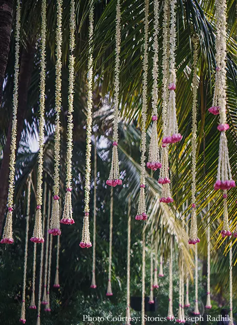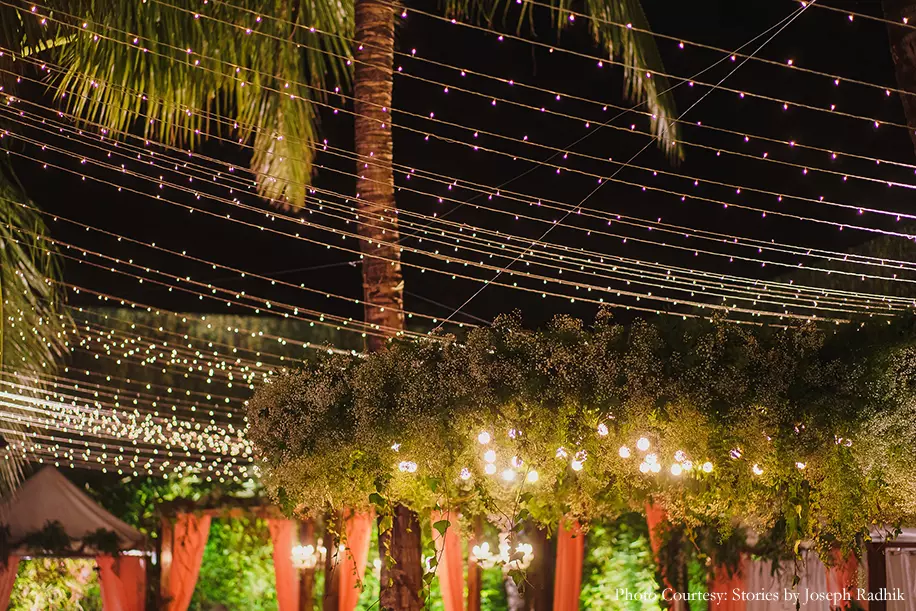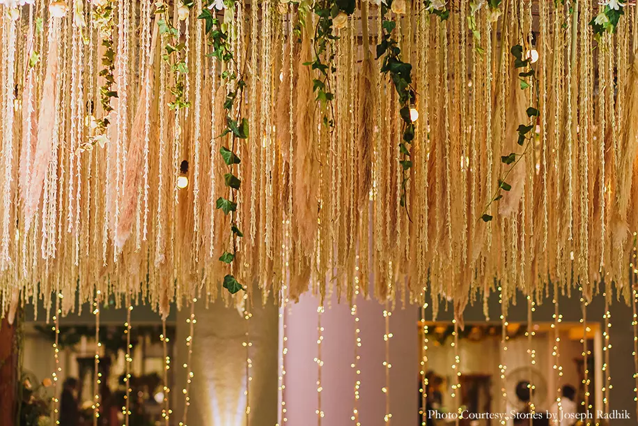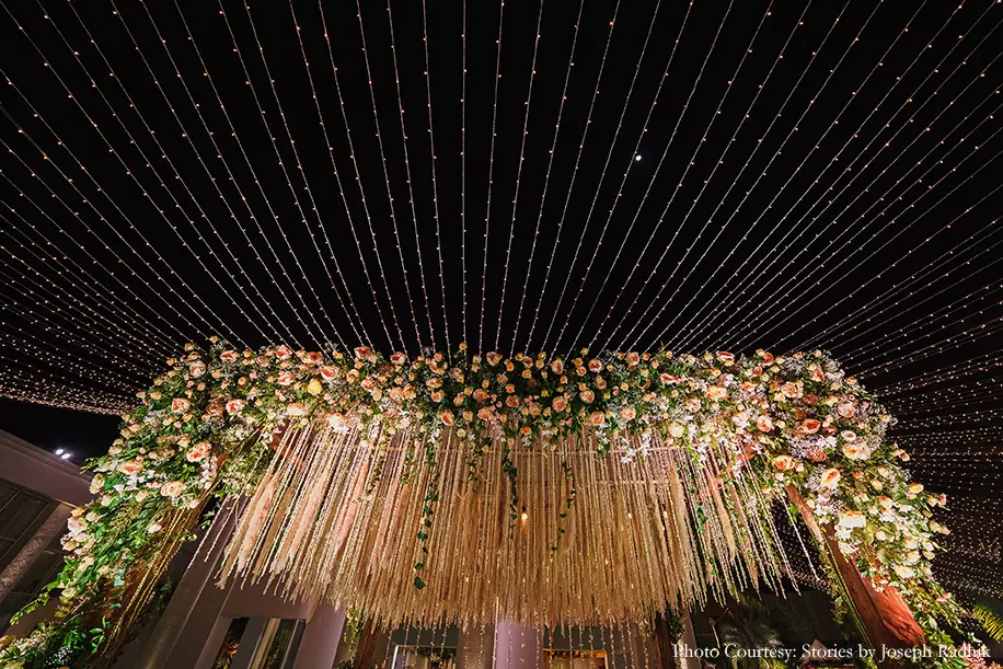 Decorated by Event Shoppe by Sumita Ghai, this wedding was a dreamy affair as it was kissed by the gentle breeze of the Arabian Sea and surrounded by lush tropical gardens. Describing the brief given to her by the power couple, Sumita Ghai, the creative director of Event Shoppe and owner of The Mansion House shares, “The brief given to us was specific but nuanced. The couple wanted a neutral palette and a minimalistic design. But, at the same time, they also wanted several touches of tradition that brought out the real essence and exuberance of the ‘Great Indian Shaadi’.