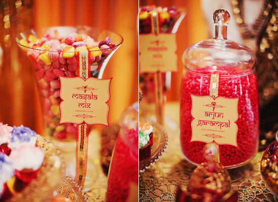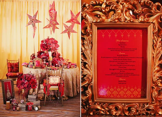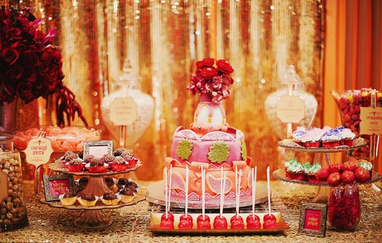 Anais Events, a US based company shared with us the photographs of their latest Bollywood inspired shoot. The model is dressed as a Bollywood Actress, and the desserts are playfully named after leading Bollywood Stars. The menu and other table items are inspired by hit songs, and all set against a bright/ festive colored backdrop of flowers, ornate linens and jewels. What a Bolly-good idea!