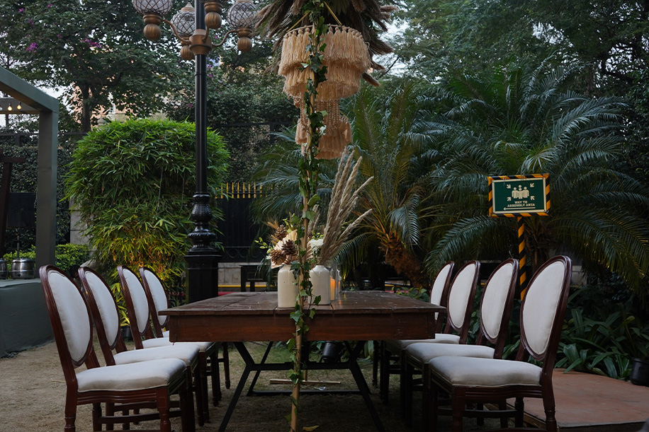 Namha shares, “The most crucial event was the baraat and we planned this in multiple stages. The baraat was curated around the concept of a vanity van where people could come dance, have a massage if tired, and do a touch-up of their hair and makeup, complete with pockets for different age groups, which made for an experience like no other. Safabandhi was not designed separately but as part of the baraat itself, infused with bursts of energy by Gurdeep, and followed by rousing music by DJ AJ and dhol players.”