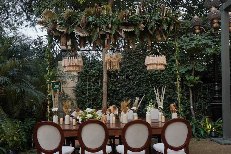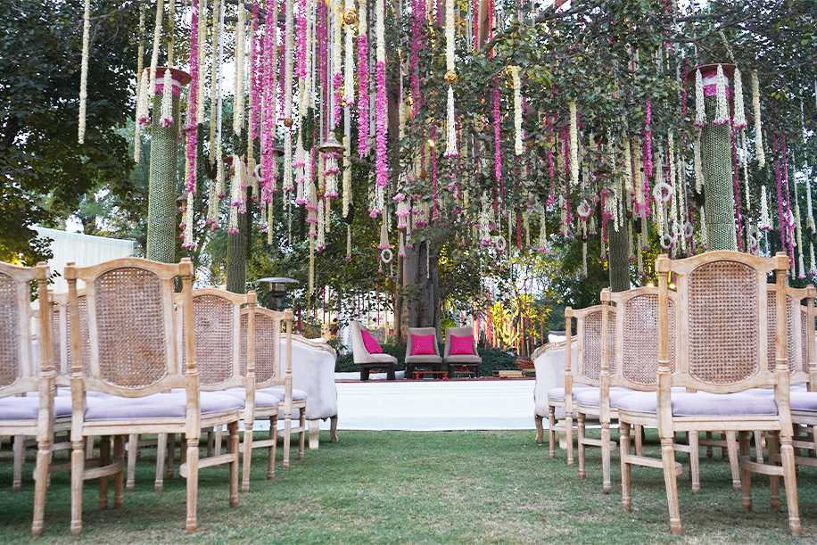 A divine blend of grandeur and serenity, this 4 day Delhi wedding was hosted with both chic hotel and farmhouse festivities. Combining the bride’s vision of traditional home-held celebrations with the splendor and spirit of the Big Fat Indian wedding, the team worked in seamless cohesion across the two venues to ensure perfection. The revelries saw a host of exciting professional entertainment, stellar decor, luxurious hospitality, and more. Namha and her team worked tirelessly for more than a year to curate specialized experiences for every event, adding personal touches to everything from the decor to the food, artists, gifts, and more.
