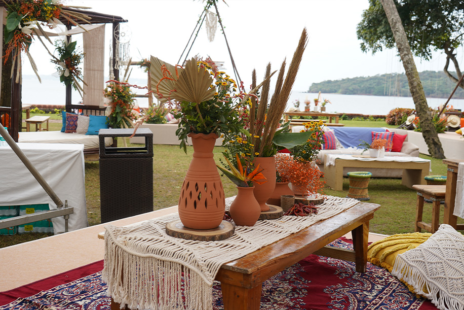 The delicious eats and karaoke of the Welcome Dinner got the ball rolling before the sunkissed revelries of the Mehndi function the next morning. Namha and her team pulled out all the stops for the Tulum-inspired lunch soiree which saw everything from a band and custom drinks to welcome the guests, to mehndi artists, jugglers, stilt walkers, a professional mentalist, a carefully curated menu, and more. Iconic names like Navraj Hans and DJ Ganesh took the Sangeet to the next level, while the white beach wedding was nothing short of a dream.