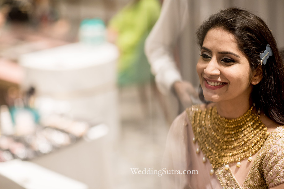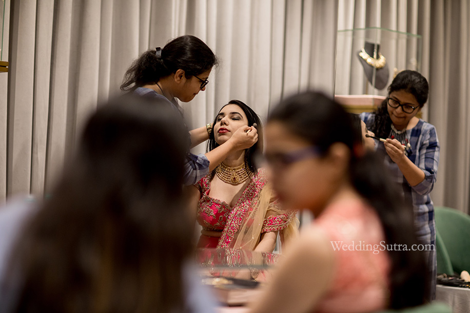 Makeup Artist Nidhi Agarwal getting bride-to-be Kawleen wedding ready.