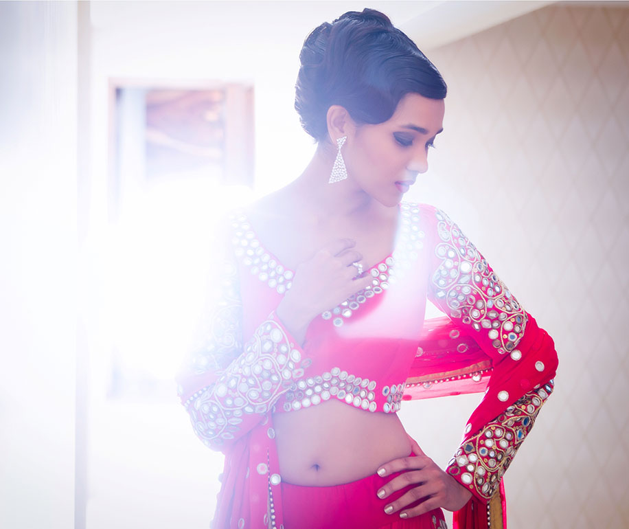 The shoot capitalizes on the vitality of youth, a quirky sense of humorous rebellion made evident by the costumes from ‘Papa Don’t Preach’. Presenting the ‘Mumbai bride’ sipping some bubbly, taking a quick breather from the hustle as she prepares for her big day.