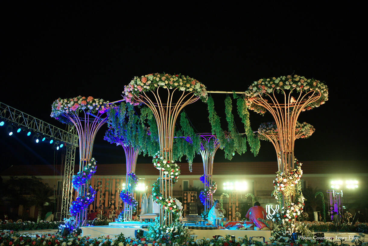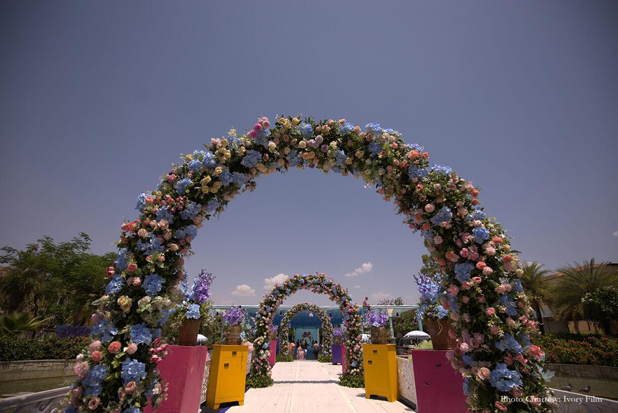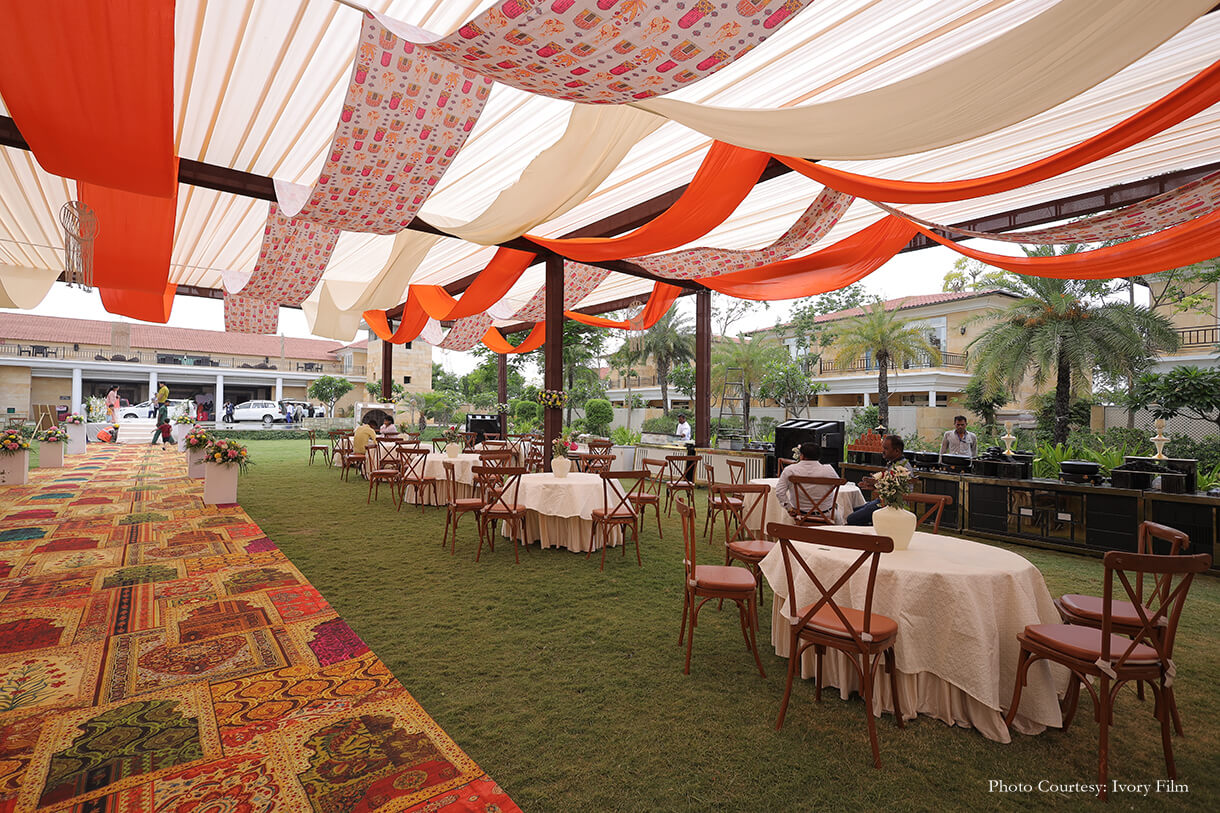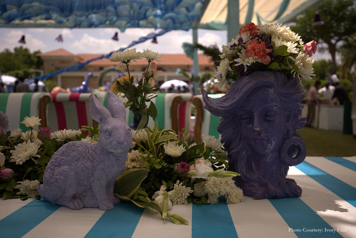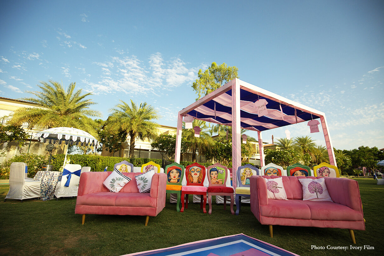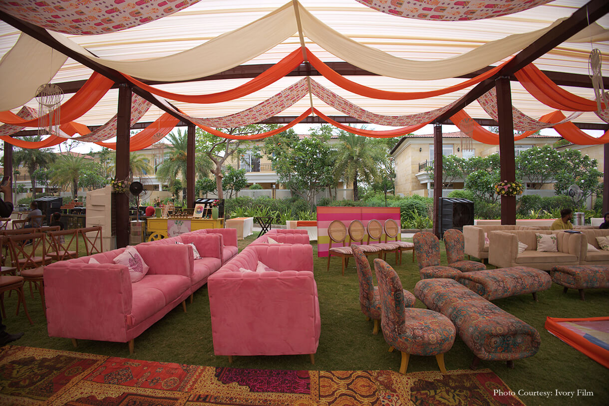 The joyous garden Haldi was filled with the vibrance and local flavors of Rajasthan. Traditional fabrics and rugs were interspersed with bright hues, colorful flowers, crystal memorabilia, and more to set an ambiance that combined the modern with the traditional.