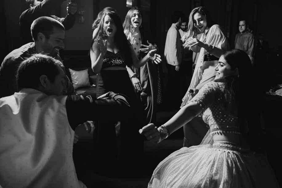 The day continued with a rousing Sangeet where the dance floor was left unattended for not even a single moment! Tones of blue filled the space as the traditional art of the Patola was majestically incorporated in the linen, while other local arts from around the country inspired every aspect of the decor.