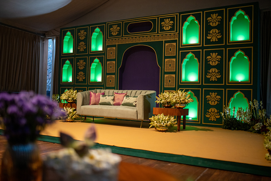 Orchestrating the grand affair across a range of venues in Gurgaon, the team of Designer Events Inc. shares insight into the planning and design of the wedding. “The process of designing the decor for Mallika and Kartik got us thinking about how best to express the beauty of their love story and unique personalities. We let our creative juices flow freely to create bespoke concepts and designs for each of the events, and navigated decor elements and color palettes to bring out the best of every theme”