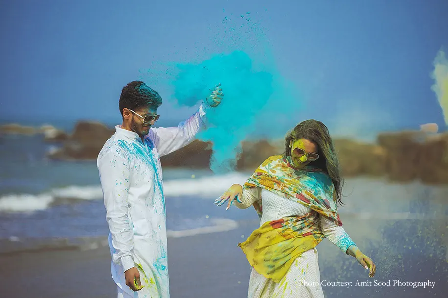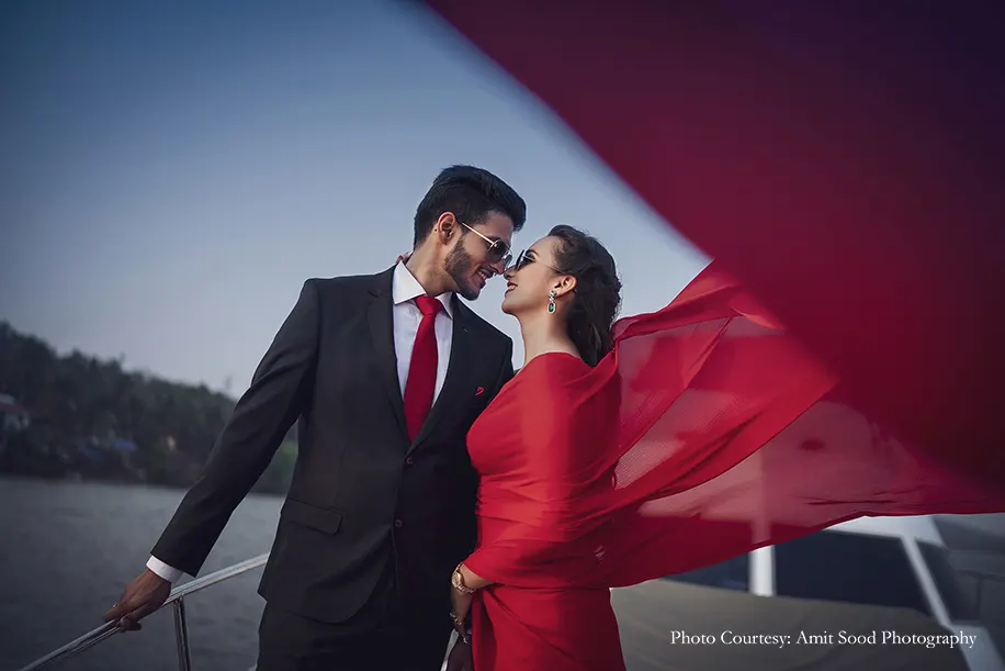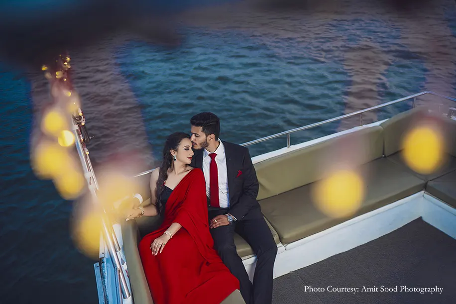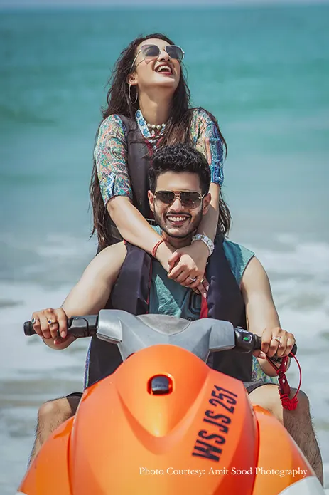 Akshita’s flowing red gown at the fort evokes an indelible nostalgia, while her crimson saree that perfectly complemented Deepak’s dapper suit emotes pure sophistication in the Yacht pictures. A versatile wardrobe that included pastel traditional attire, breezy resort wear and chic casuals synced with a range of fun activities that they enjoyed together. Shots of them playing holi, jet skiing and cruising in a Jeep seamlessly blending with moving captures of their love are sure to make you want to plan a getaway with your partner!
