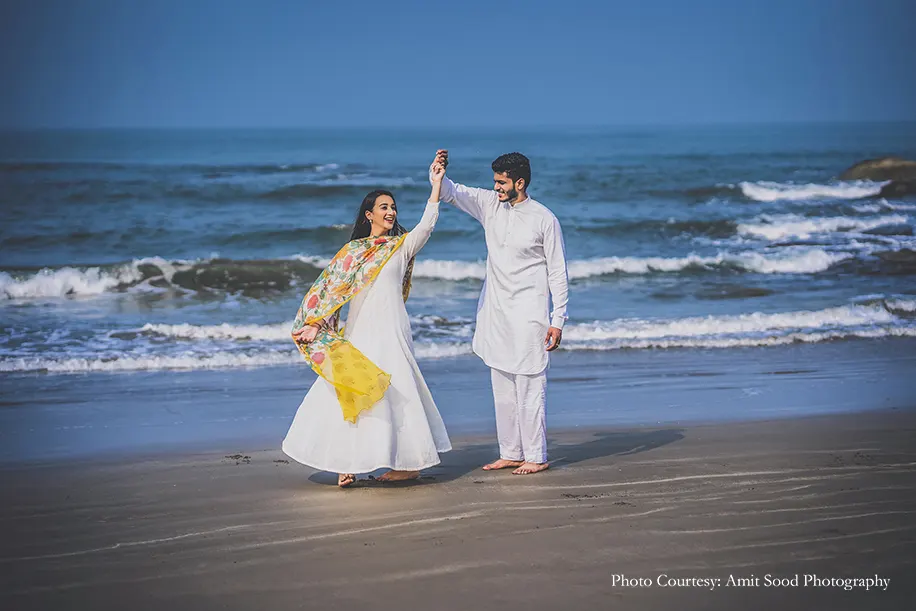 Done by Amit Sood Photography, the beguiling photoshoot captured the nuances of their bond amidst myriad beautiful locations of Goa. Shot against sandy terrains, rolling waves, rugged stone forts, swaying palm trees and more, their love was frozen for all eternity in these flawless pictures.