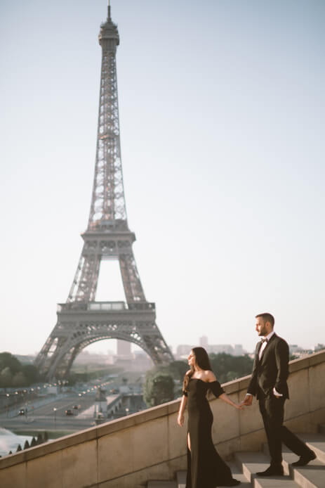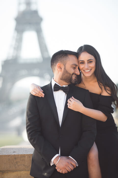 “After toying with a few different ideas for the engagement shoot, finding out if we want to do it in London or abroad, looking through many inspirational photos and speaking with our photographer, we decided on a European destination. Paris, the most romantic city we could think of, fit the bill perfectly. It was convenient to get to, and we didn’t need a permit for photography! We let our photographer, Zohaib, take the lead. We love sun-filled, dream-like images in general, so we did most of the shooting during sunset and sunrise. It was all about getting the perfect light, in the ‘City of Lights!’ We spent the day soaking up the scenery and getting the perfect clicks, and by the end of it, we were all exhausted. I’m not complaining though as on seeing the images, it was worth more than the sleeplessness.”