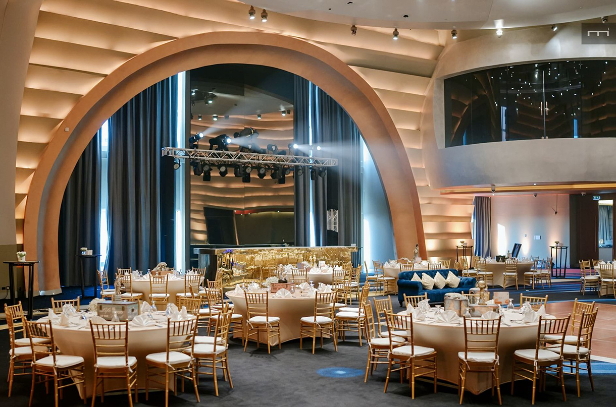 Venues: Al Habtoor Palace, Preferred Hotels & Resorts, Dubai; Waldorf Astoria Dubai Palm Jumeirah (Sunset Vows, Reception)
