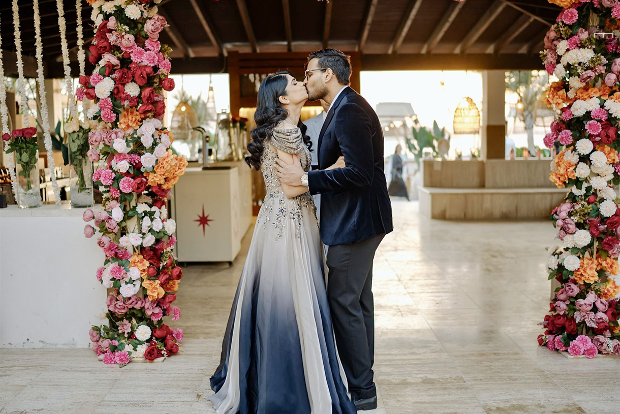 Rahul shares, “The sangeet evening was a celebration of travel and adventure that included exquisite décor and immersive experiences. Guests were greeted with customized boarding passes as their invites to this special evening. The venue was transformed into a traveller’s haven with decor that included vintage suitcases, globes, and postcards from the couple’s favorite destinations. The stage resembled an airport runway, complete with LED graphics of aeroplanes taking off, while the bar counter was designed as a travel kiosk serving ‘Around the World’ cocktails inspired by countries like Italy, Japan, and Mexico. Electrifying performances, heartfelt speeches, and music had everyone up till the wee hours of the morning.”